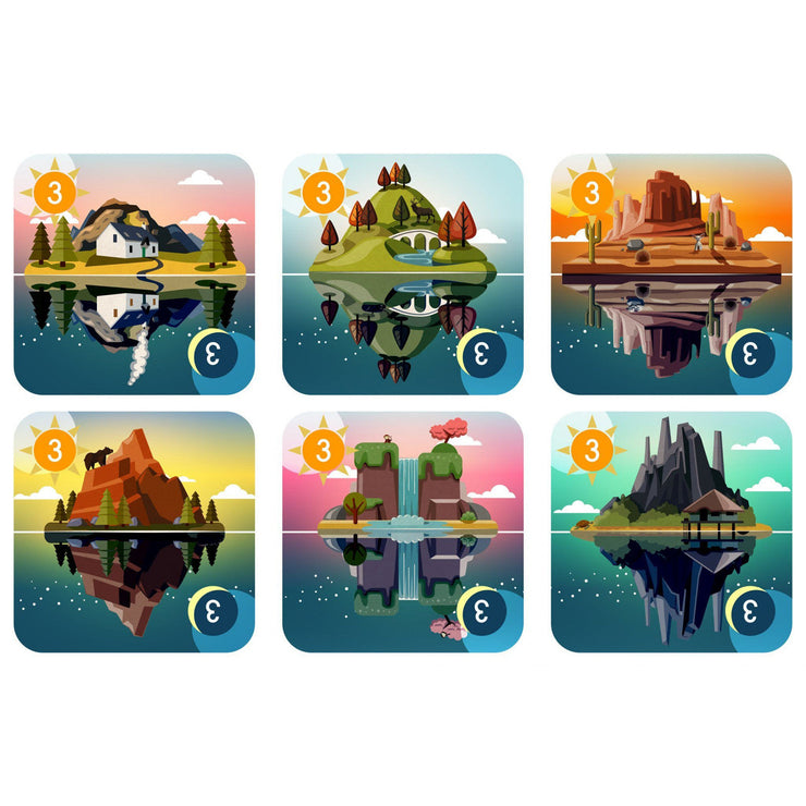 Tranquility is a cooperative card game in which players must fill the sea with islands — specifically island cards with numbers on them — and guide the ship home before any player runs out of cards. Note that in the world of Tranquility the only way to play is in silence.