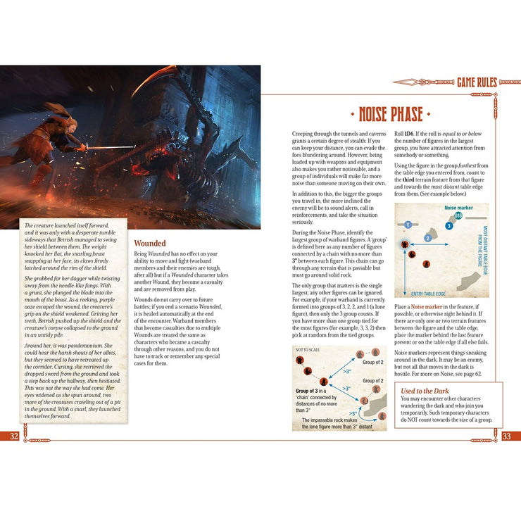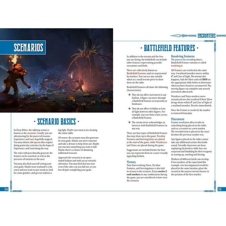 In Deep Below, you take charge of a six-strong warband exploring the underworld's collapsed keeps and claustrophobic caves. It is both a standalone game and a variant of Five Leagues from the Borderlands, tailored to the deep, dark environment, and integrated to allow characters to transfer between games for an expanded game universe. Deep Below streamlines the core mechanics, offering a full campaign experience with its own character progression.