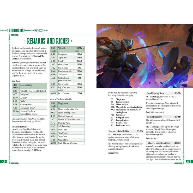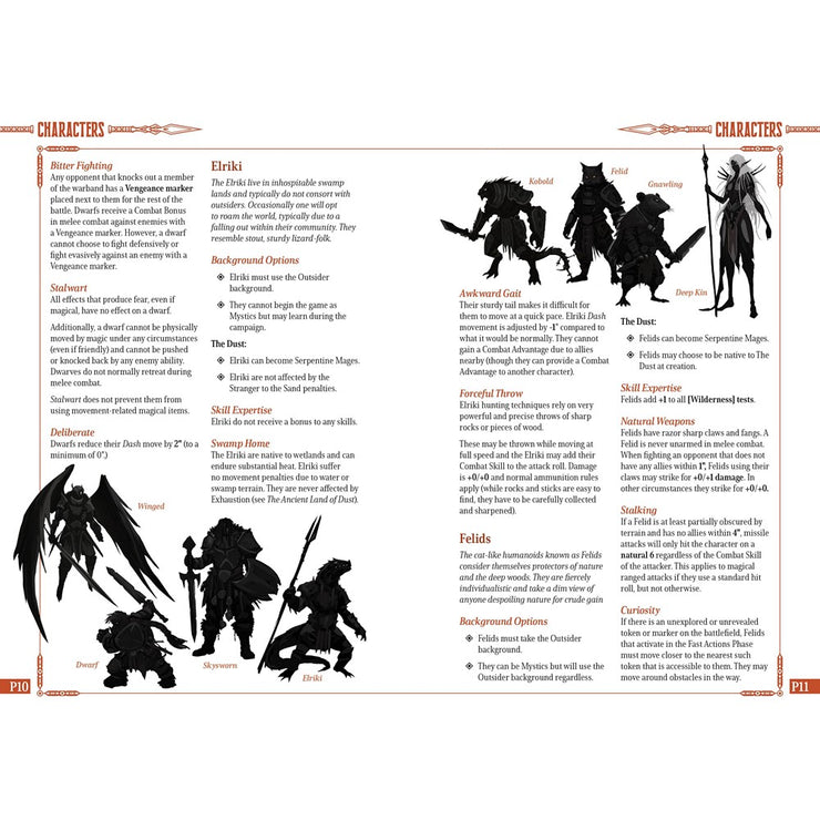 The Ancient Land of Dust is a harsh, magic-soaked desert once known as the lush Emerald Fields before the rise of a great evil. Now, ancient threats stir as undead soldiers rise and warriors are drawn across time to serve a fallen Warlord. Spirits grow restless, warning of an impending war. This expansion offers new rules, options, and guidance to bring your characters into a land rich with history, danger, and opportunity!