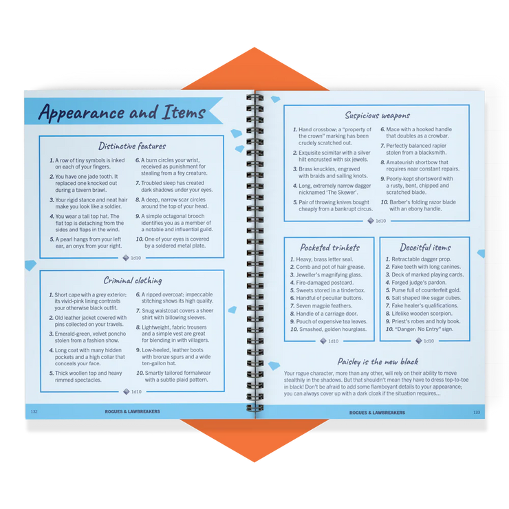 The Fantasy Character Kit is your ultimate toolkit for creating DnD characters that steal the show in any game. With random tables packed with unique backstories, epic gear and imaginative details for every class, your characters and NPCs will feel real and fleshed-out. If you want to make a cunning Rogue or a mighty Paladin, this A5-sized toolkit gives you the tools to make them truly legendary. Made for D&D, Pathfinder and any fantasy RPG that craves some serious character depth.