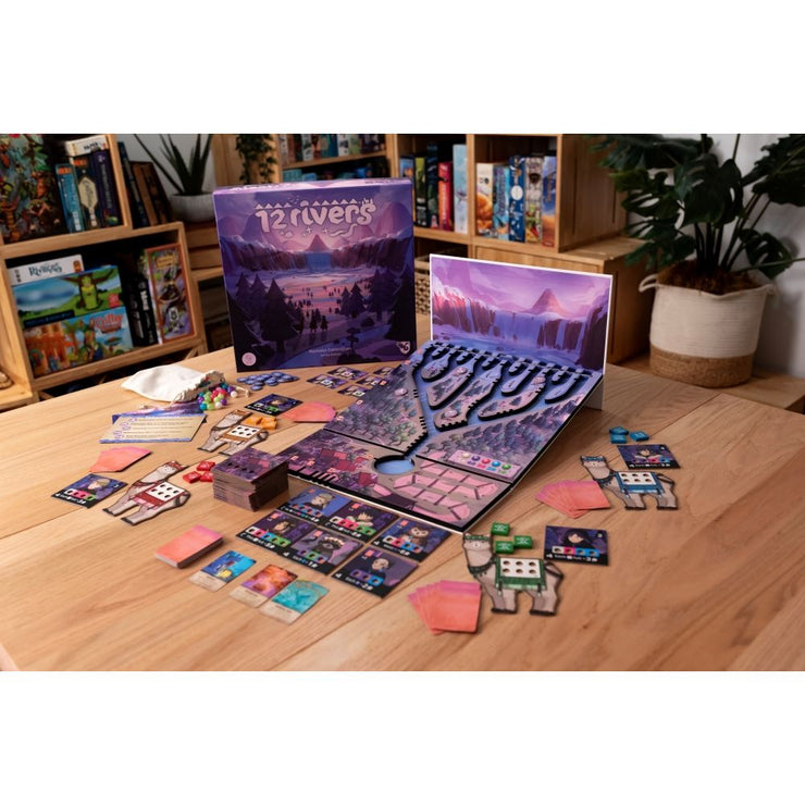 Lead a tribe to explore the fabled twelve rivers flowing from a mystical lake high in the mountains. Your goal? To find the magical coloured pearls that roll down the rivers in the current. Perhaps a helpful fairy may help you on your quest! Where the rivers converge there is a village where you can make life-long friends and deliver the pearls you have collected, to be used to heal, grow, and ensure another prosperous year for all. Take turns over 4 game rounds to trade through the galactic exchange, smuggle resources, settle planets, and build developments on them to match planetary goals and increase your production and victory points. Expand your economy until you can build powerful mega-structures in space, and achieve your system wide production supremacy goals. Leverage events, manipulate the markets, and outwit and outbuild your rivals to victory!