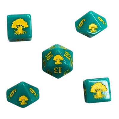 - 5 spindown dice to use as life counters, token counters, lore counters, poison or toxic counters, or whatever else you need to keep track of in your game: 1 x d20,2 x d10, 2 x d6