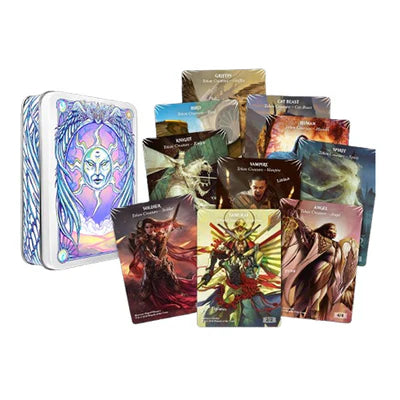 • A gorgeous, embossed tin covered with original red mana art by Justine Jones