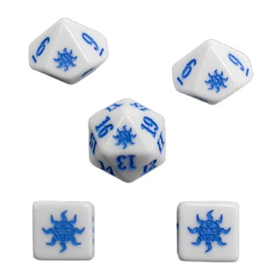 • 5 spindown dice to use as life counters, token counters, lore counters, poison or toxic counters, or whatever else you need to keep track of in your game: 1 x d20,2 x d10, 2 x d6