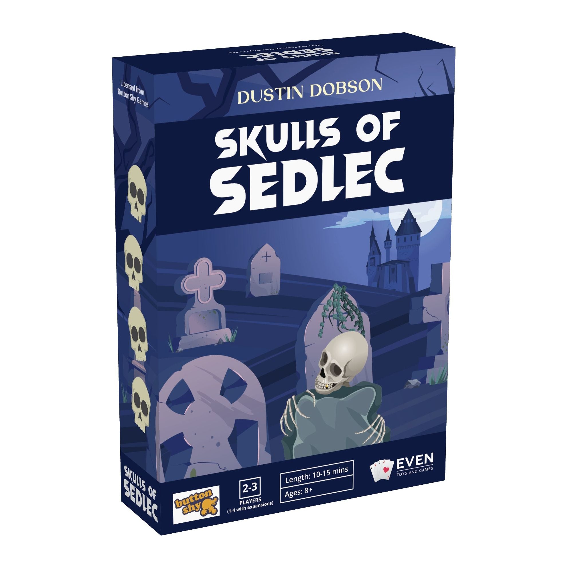 In Skulls of Sedlec, you are novice monks, competing to create the best arrangement of skulls. Dig up graves from the graveyard to reveal cards, take cards into your hand to collect skulls, and arrange the cards from your hand into a stack. Whoever better honors the deceased's last wishes will score more points.