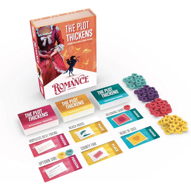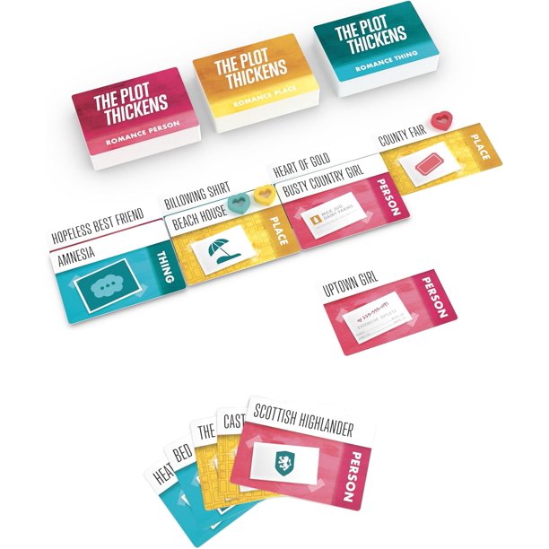 The Plot Thickens is a storytelling game for quick-thinking, imaginative folks just like you and your friends. The object is to take your hand of story cards, (people, places and things) and lay out the tale of your character, and their fate! You’ll earn plot points for every card you use to build your story, and every time you interweave with other’s narratives.
