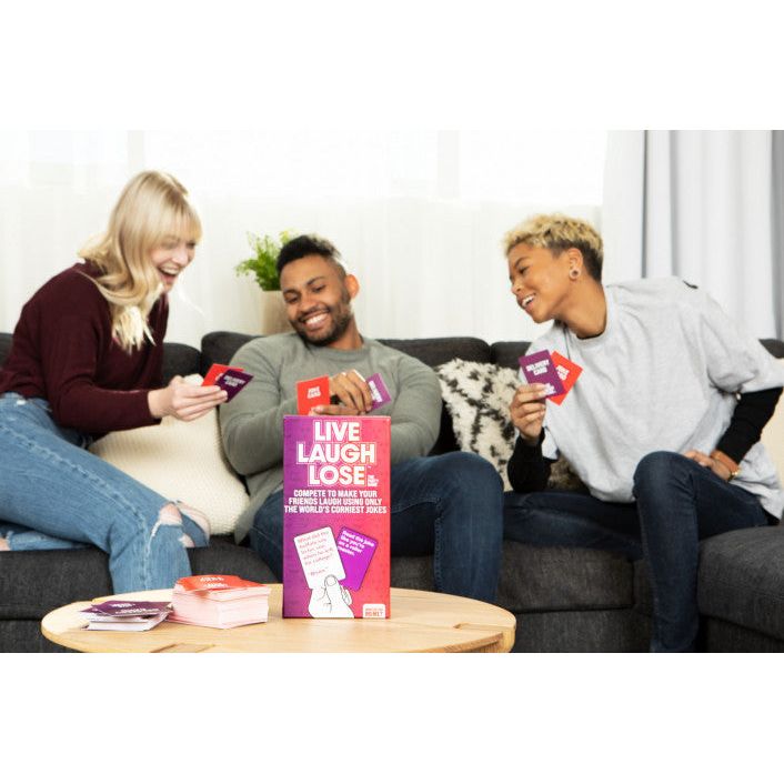 How To Play: The game is easy peasy lemon squeezy! Each player starts every round with 3 Joke Cards and 1 Delivery Card in hand. Make your friends and family laugh by delivering the joke on your Joke Card using the voice or tone on the Delivery Card. If you make anyone on the other team laugh, you win they point. If they are able to hold their laughter in, they win the point. The team with the most points at the end of the game, wins.