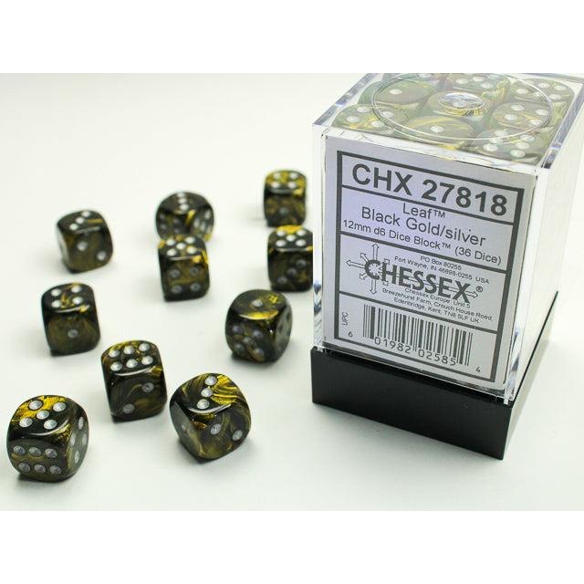 Leaf 12mm D6 Black Gold/Silver (36) (CHX27818)