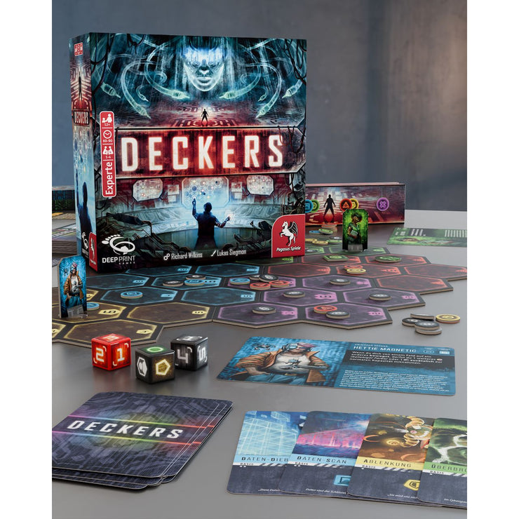 In this extraordinary deck-building game, you hack into the network of one of seven SMCs. Use your command cards and combine your special abilities to overcome the dynamic defense systems and end the SMCs' reign.