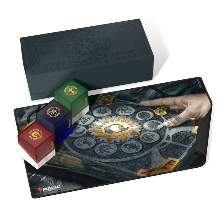 Gather the guilds of Ravnica! The stunning Arkhive 1000+ Xenoskin from the "Guild Summit" series is the perfect storage place for larger collections, a cube, or several deck boxes - for example our ten Boulder 100+ in the guild design. The lid, which is completely removable for the first time on the Arkhive, is attached on both sides with a strong magnetic closure as well as our trusted ZnapClaw mechanism and bears the symbol of the Guildpact. The Arkhive 1000+ Xenoskin is made from durable Xenoskin material.