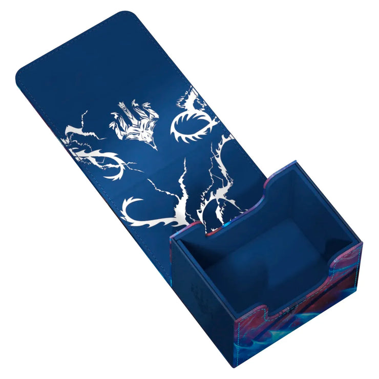 The Sidewinder 100+ made from durable Xenoskin material holds up to 100 double-sleeved or 120 single-sleeved cards, which are kept secure in the deck box thanks to a strong magnetic closure and soft microfiber interior. The sturdy, high-quality Xenoskin surface of the Sidewinder is printed in full color with officially licensed artwork from Magic: The Gathering’s Tarkir: Dragonstorm set.