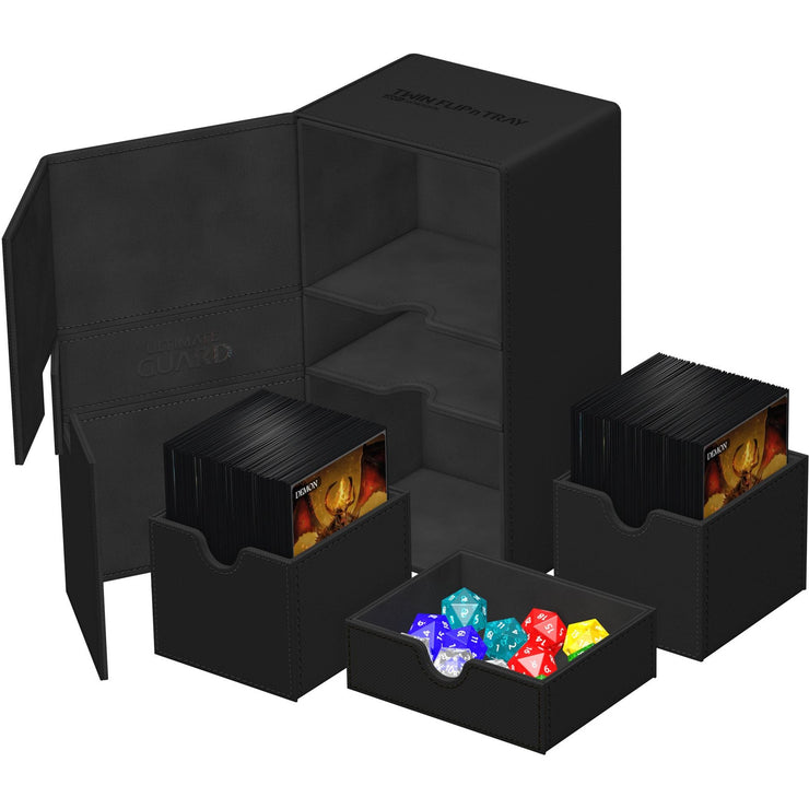 A box, two decks of cards and an additional accessory compartment: Our Twin Flip'n'Tray combines all the features that one great deck box needed. It doubles the size of ours