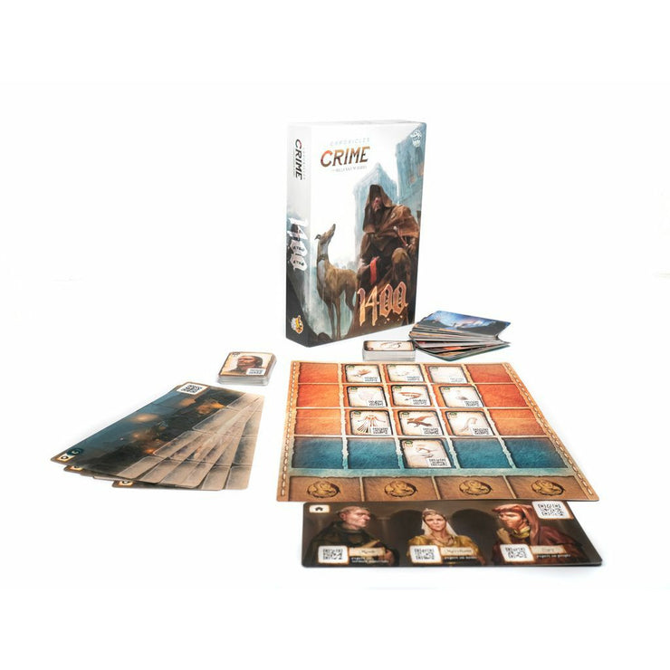 Chronicles of Crime: 1400 is a standalone game for 1-4 players that brings back well-known mechanisms of the original Chronicles of Crime game while adding some new twists. Now you can deduce not only from the evidence you find or the testimonies given by various characters but also from the mysterious scenes depicted on new Vision Cards. These scenes can be either from the future or from the past and they usually involve characters and objects yet to be revealed.