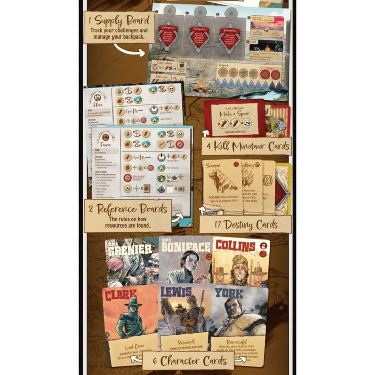 Corps of Discovery: A Game Set in the World of Manifest Destiny is a co-operative deduction game in which players each take the role of one of the crew on the expedition and set out to explore the land. The game board allows for different maps to be inserted into it, so you have many adventures ahead of you.