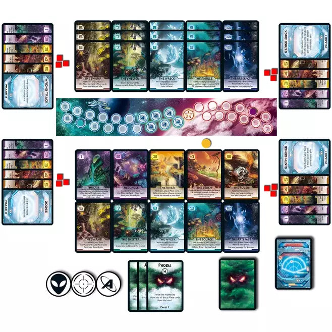 If you play as the Creature, you will stalk and pursue the shipwrecked survivors. By playing your Hunt cards and using the mysterious powers of Artemia, you try to wear down the Hunted and assimilate them to the planet forever.