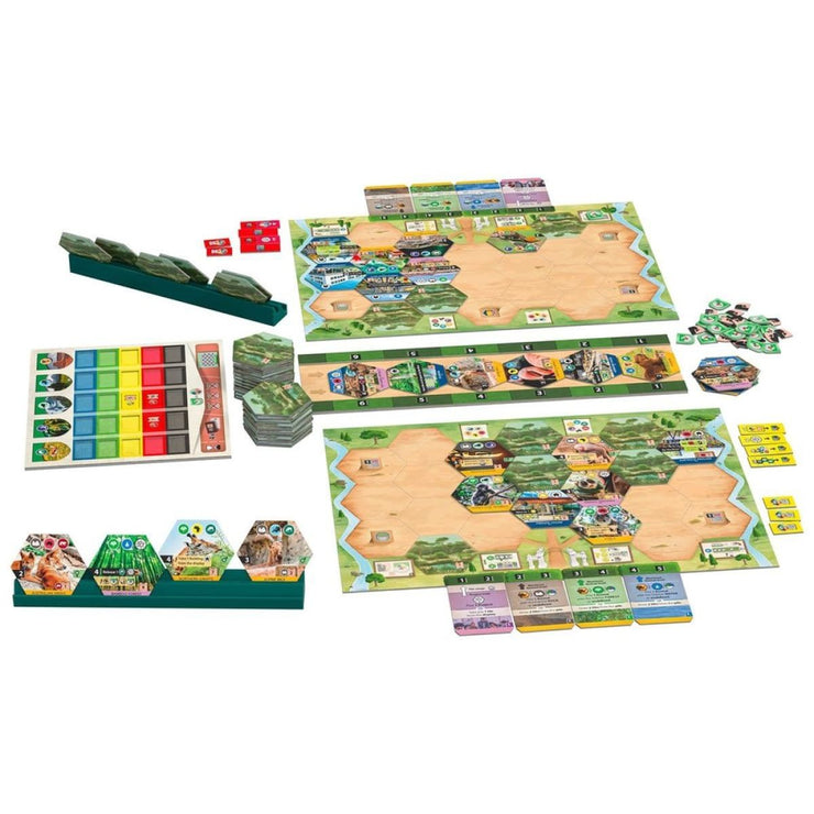 In Sanctuary, you are building a modern, scientifically managed zoo for animals and visitors. To do so, you have 135 unique zoo tiles at your disposal, consisting of animals, buildings, and projects. In each game, you try to place the best mix of tiles on your zoo map from the available options. Different tile effects allow you to achieve your conservation goals and make your zoo more attractive to visitors.