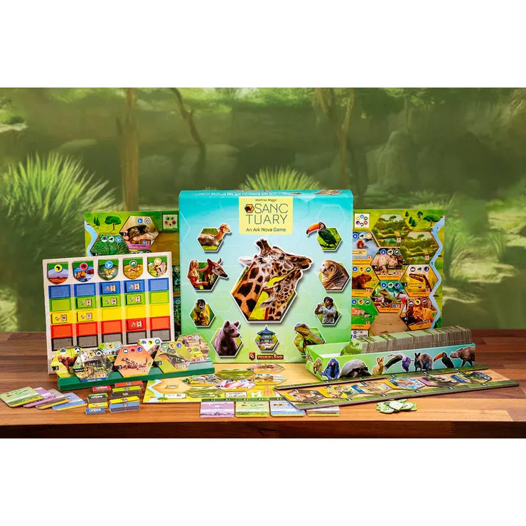 Sanctuary takes the core ideas of the global bestseller Ark Nova and refines them, offering a more streamlined yet equally engaging experience. The medium-weight game focuses on the exciting challenge of optimally placing animals, buildings, and projects within your zoo, ensuring every play is fresh and dynamic.