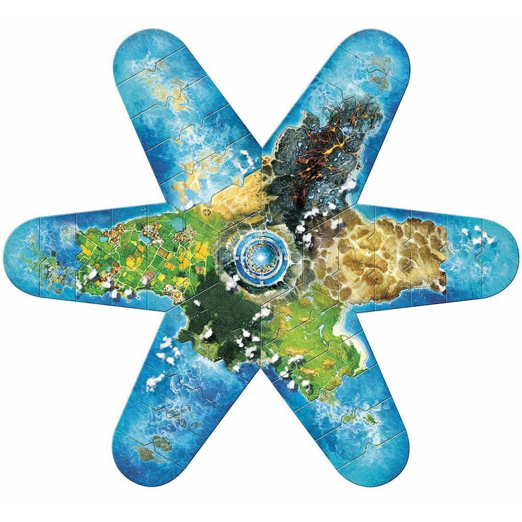 Atlantis Rising is a co-operative worker placement game in which you must work together with up to five other players to deploy citizens across your homeland, gathering resources in order to build a cosmic gate that can save your people. Workers placed close to the shoreline are more rewarding, but are more likely to be flooded and the actions lost.