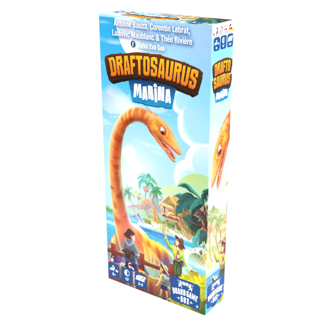 This expansion for Draftosaurus adds a new double-sided board that each player can combine with their existing park to add a new river zone. Plesiosaurus are the only dino-meeples that can be placed in this part of the river, earning points at the end of the game. To move your plesiosaurus further down the river and earn more points, you must place specific other species in your park to unlock the dams one by one!