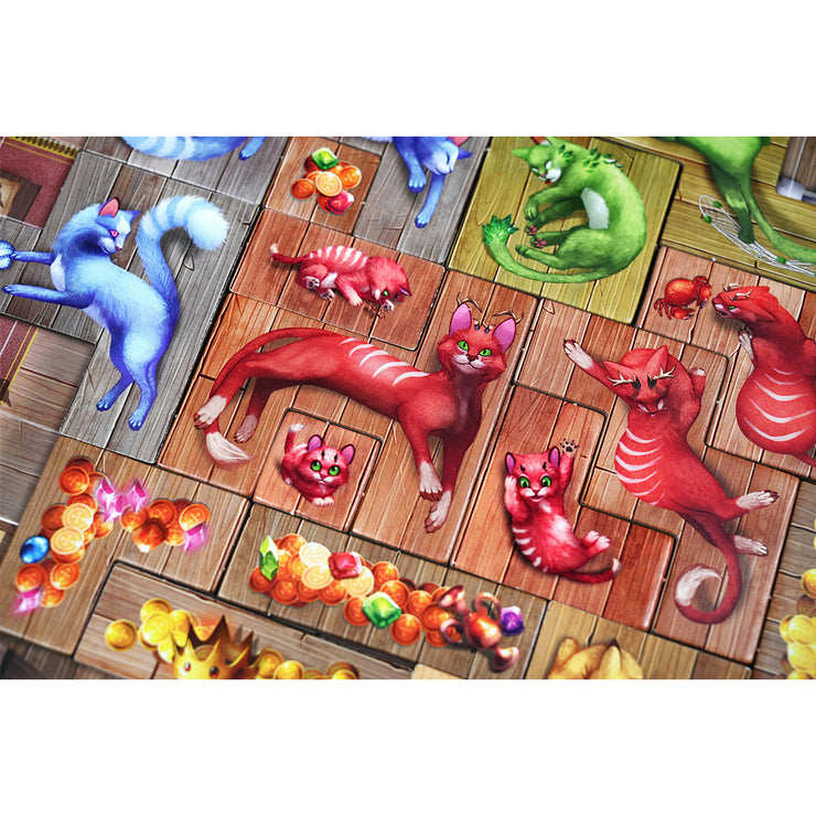 The Beast module adds ancient beasts to the game which provide early game goals while you search for lesson cards. Each beast will only be happy if it is near its friends and you will need to carefully position cat families around these creatures if they are to form friendships and score points.