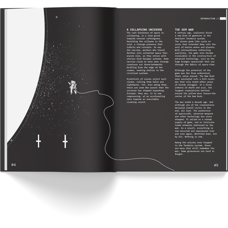 Engage in power struggles and build your crew’s reputation. Salvage and steal to endure a ruthless universe. And above all, do anything you can to get that next job. Your life will depend on it.