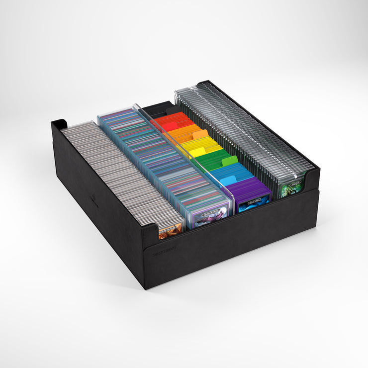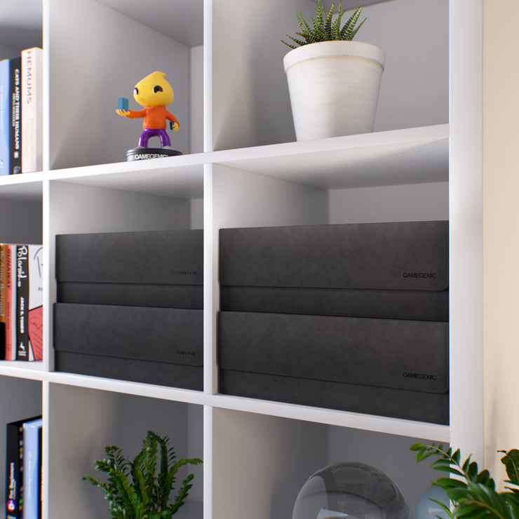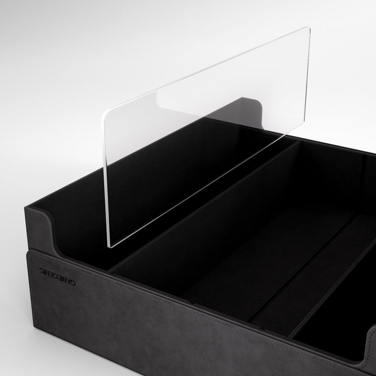 This premium multifunctional storage solution for cards and deck boxes gives you almost endless options to gather, hold, and sort your valuable card collection. It includes signature Gamegenic features like the shiftable and removable acrylic space divider and the well-established convertible system.
