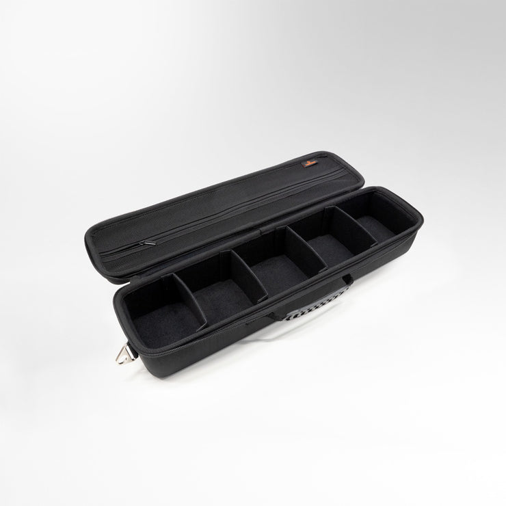The Game Shell XL is a large, portable case in which to keep several deck boxes or a large collection of single cards. It holds up to 650 double-sleeved cards and comes with 4 removable dividers to create individual compartments within the case. This allows customizable organization of several boxes, single cards or dice and tokens. The box is made of durable nylon material and is therefore water-repellent and dirt-resistant. An adjustable shoulder strap and reinforced handle ensure comfortable transportation.