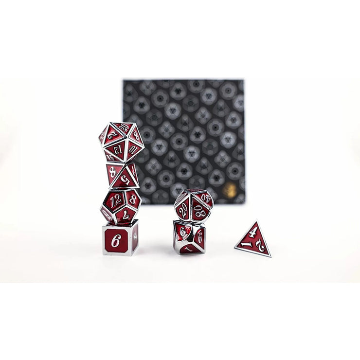 Serif Red/Silver - Metal RPG Dice Set (LPG)