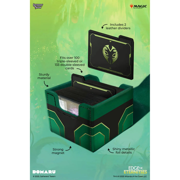 Blast off into the Edge of Eternities with these DOMARU boxes, featuring foiled designs inspired by five of Sothera's core species. Keep your cards and other items safe within these boxes from clashing interstellar powers and supervoids.