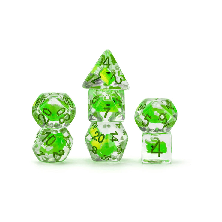 Dragon Storm inclusion dice feature the head of a dragon perfectly captured in each die.