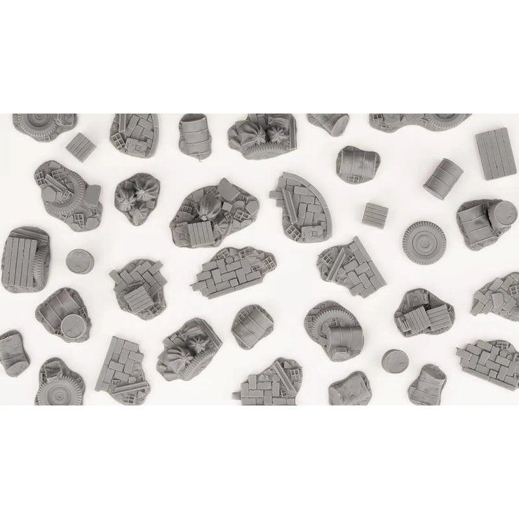 Lost wheels, fuel drums, broken asphalt and other debris will provide the right framework for your urban battles and post combat scenarios.
