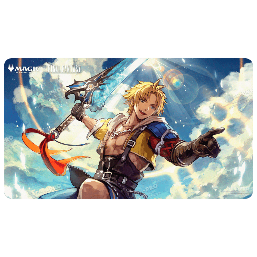 Playmats feature popular Magic: The Gathering®—FINAL FANTASY™ Tidus, Yuna's Guardian (Commander) artwork and enhance your gameplay experience! Each playmat is made with a soft fabric top to reduce damage to cards, and the non-slip rubber backing keeps the playmat from shifting during use. With dimensions of approximately 24 in. x 13.5 in., a playmat also makes an excellent oversize mousepad for home or office.