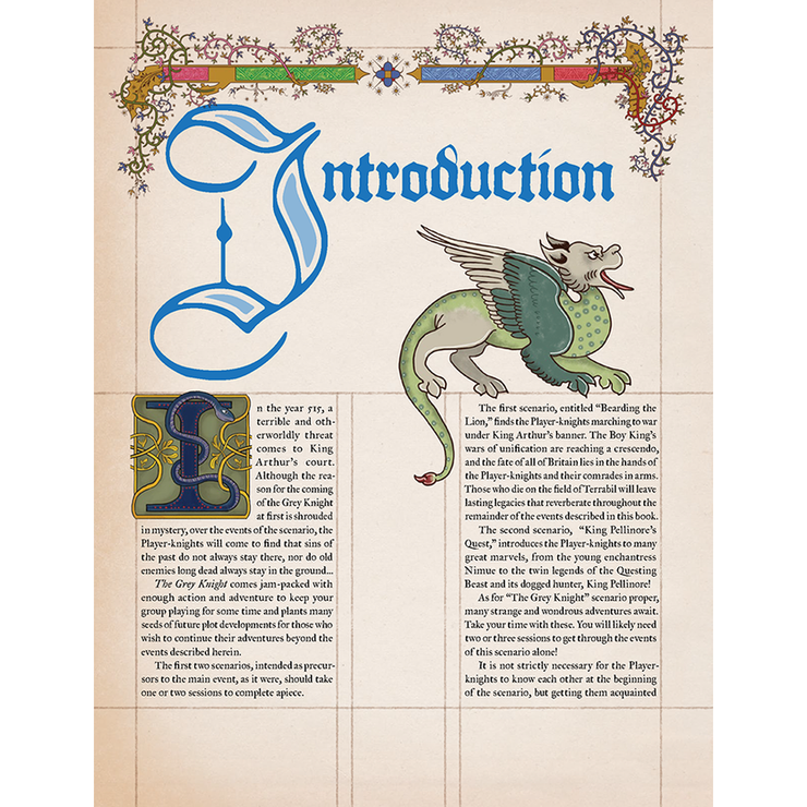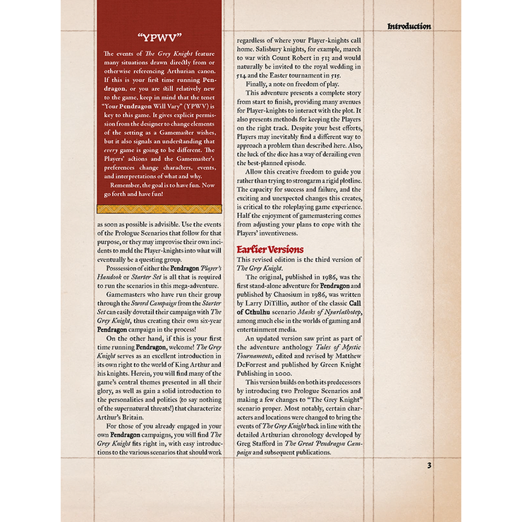 Pendragon: The Grey Knight is a complete campaign, fully compatible with both the Pendragon Starter Set and the Pendragon: Core Rulebook.