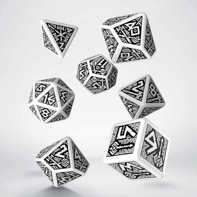 A set of the most rare and beautiful artifacts left by Quentin the inventive. These, have been polished by mythical dwarven blacksmith, that is why they still have their original white color. These dice are filled with dwarven features. Get them roll ! Dice readable as never before !