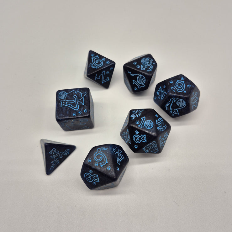 Elevate your gaming experience with this extra large dice set featuring unique cat-themed design in a variety of vibrant color combinations.