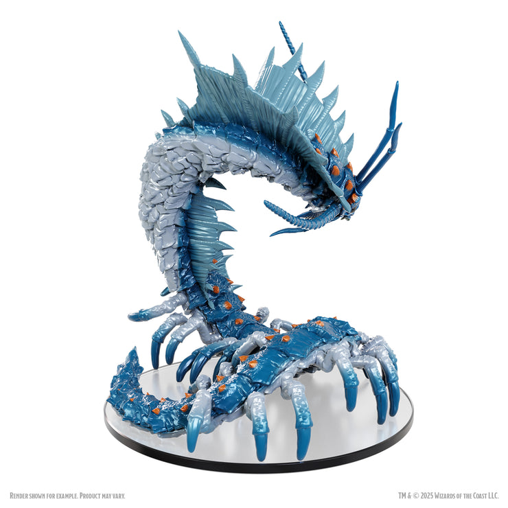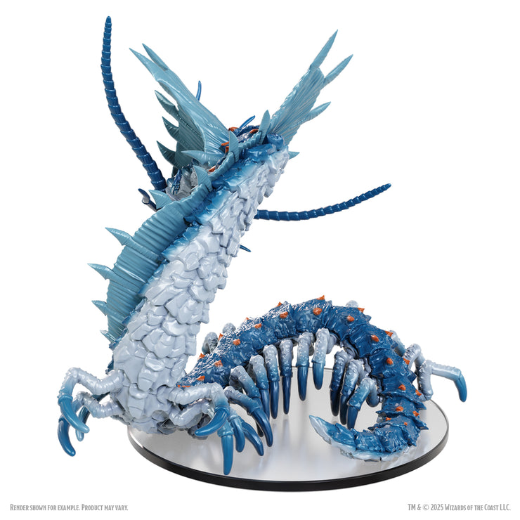 The terrifying remorhaz lurks beneath snow and ice, waiting to burst forth to attack its prey. The arctic creature is known for its super-heated body that pulses with internal fire. The Remorhaz - D&D Icons of the Realms is inspired from artwork from the 2025 Monster Manual.