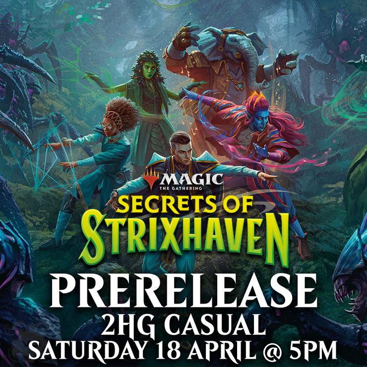 In a casual prize structure event, each player walks away with 2x Secrets of Strixhaven Play Boosters at the end of the event!