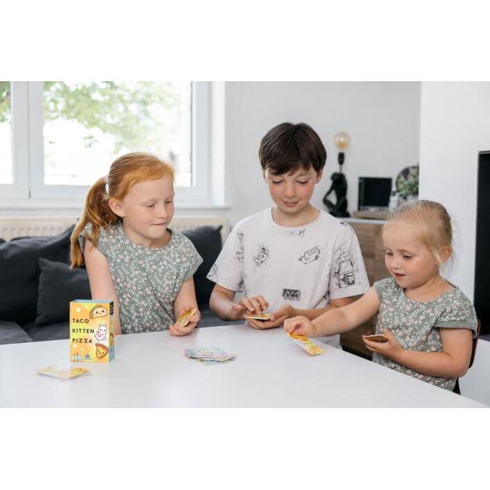 Just like the adult's version Taco Cat Goat Cheese Pizza, be the first to get rid of all your cards to win the game.