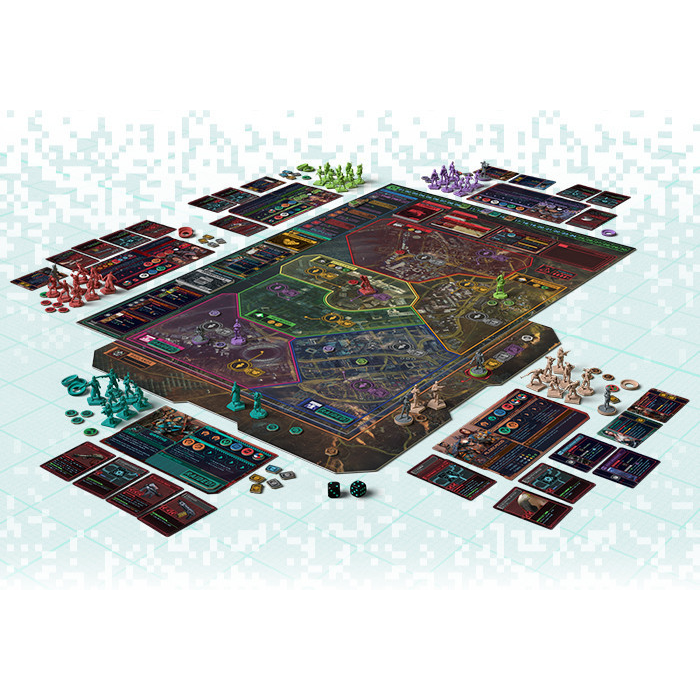 Cyberpunk 2077: Gangs of Night City is a big box strategy game with miniatures in which gangs fight for control of a city, with the city also being a living part of the game.