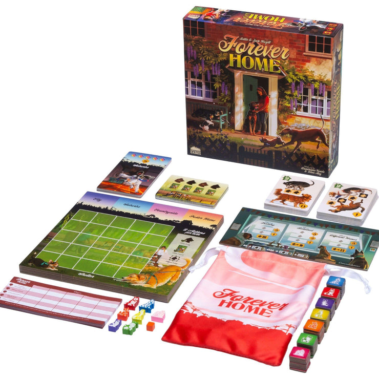 Featuring quick and simple turns; a unique solo mode; and a second advanced side to the player board, Forever Home is a replayable, easy-to-love abstract game.