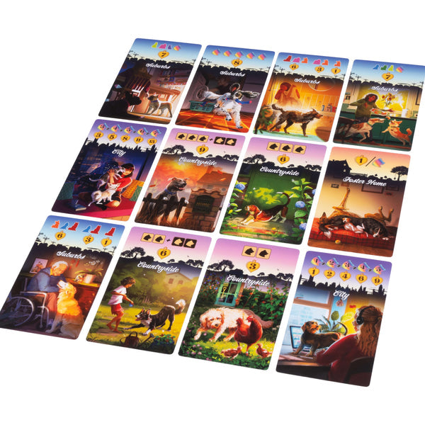 Using a combination of tile placement, set collection, and drafting, you and your friends take on the role of shelter workers. Take it in turns to bring dogs into your shelter, complete training cards, and match pups up with new families. You’ll be competing for valuable shelter commendations - as well as gaining reputation for training and rehoming the dogs in your care. At the end of the game, the shelter worker with the most reputation wins!