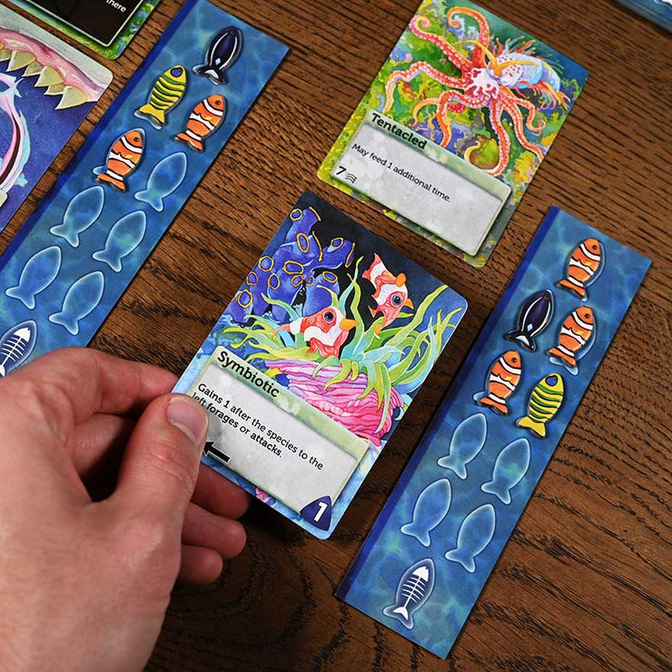 - Adapt to a Connected World: Using an easy-to-learn but deep system, players use trait cards to create and adapt their own aquatic species.