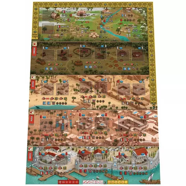 The aim of Raiders of Scythia is to be the player with the most Victory Points (VP) at the game’s end. VP are gained by raiding Settlements, taking Plunder and completing Quests. Players will need to assemble a Crew, train Animals and gather Provisions. The game ends when there is only 2 unraided Settlements or 2 Quests remaining on the Main Board.