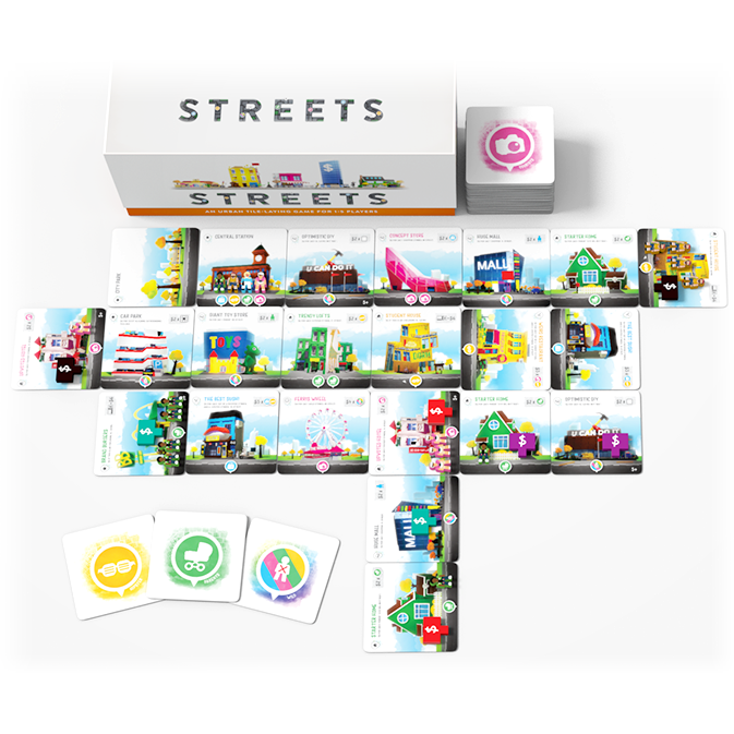 Players are investors creating attractive new streets in the growing city, investing in new businesses and homes. Some streets turn into hotspots for hipsters, others become dominated by tourists, or families with children. Others still will become designated shopping areas. Where will your Microbrewery profit the most? What is the best location for a Toy Store? What kind of environments are the other investors creating, and can you exploit their work for your own gain?