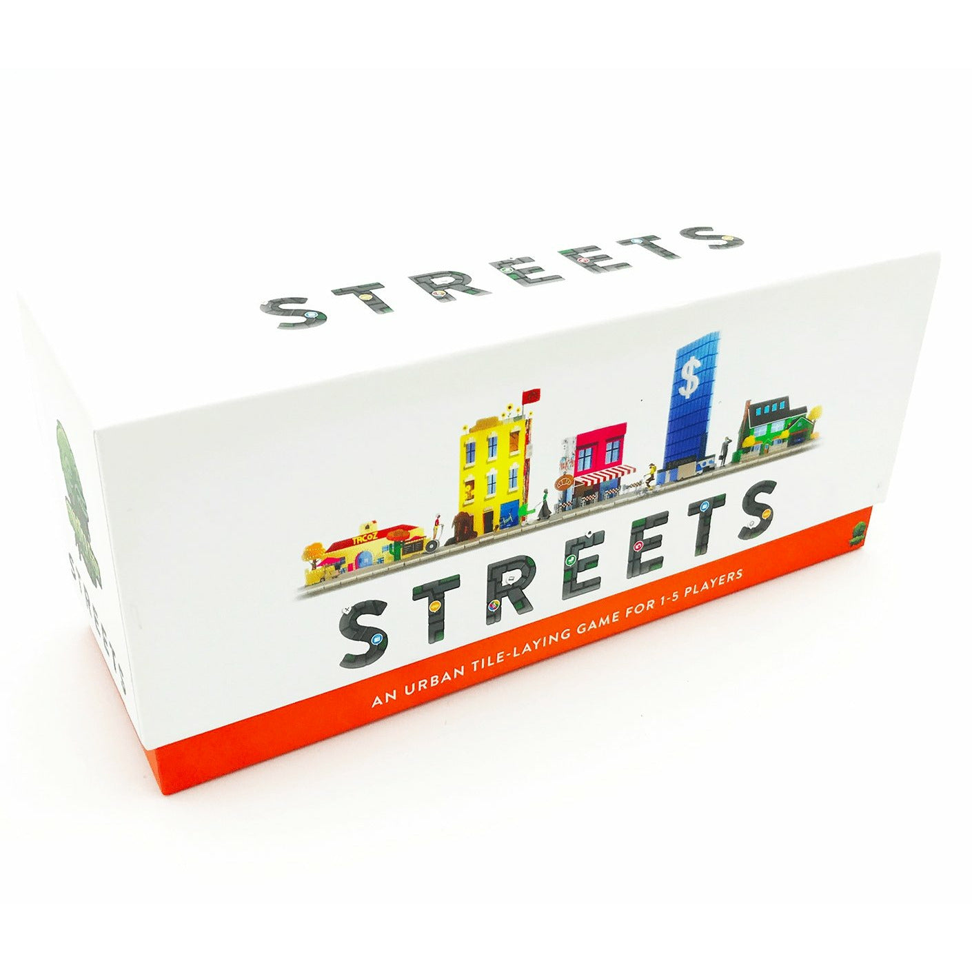 Streets is an easy-to-learn urban tile laying board game where 1-5 players collectively build a city and invest in buildings to try and earn the most money.