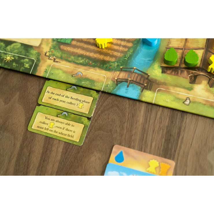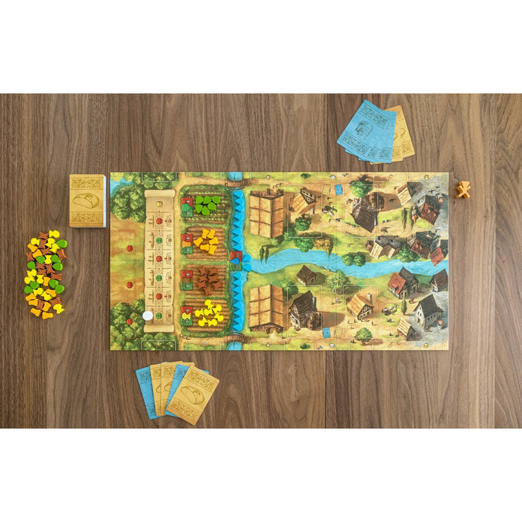 Each of you represents one of these villages. Over the course of six years – which alternate between fruitful and dry – you must harmonize your duties of harvesting and storing resources, producing beer and bread, selling them for coins and upgrading your facilities.