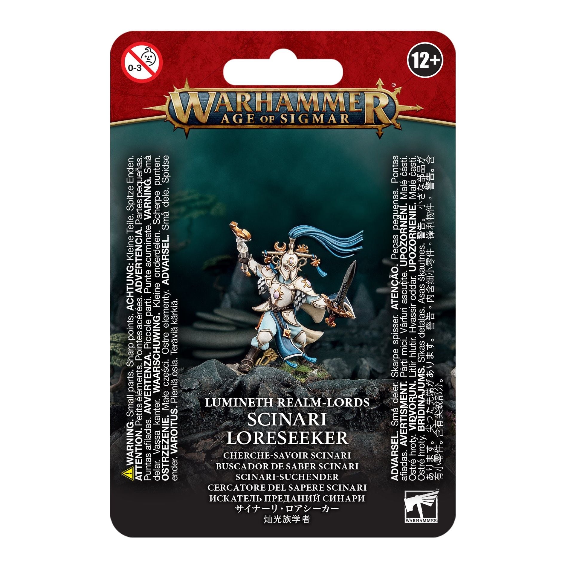 The kit is comprised of 9 plastic components, with which you can assemble one Scinari Loreseeker, and is supplied with a Citadel 32mm Round Base.