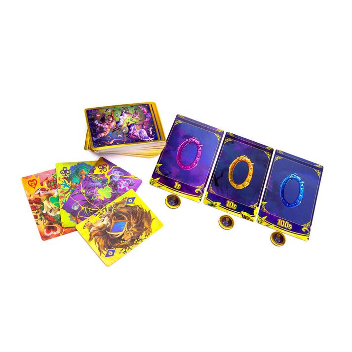Beasts is a cooperative card game where players work together to build an ever-climbing three-digit number by covering one digit at a time. On your turn, you must play all cards of a chosen suit, carefully transforming the current number into something higher—all while staying in sync with your team.