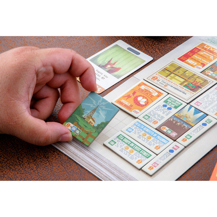 The front page is due in just a few hours and you have no time for perfection. Grab the big stories before the other papers get a chance, and make sure you get the right photos too. A newspaper is a business, so the money has to come from somewhere — don’t forget the ads! After you’ve picked out a combination of stories, photos, and ads, it’s time to lay out the front page. Did you take enough tiles to fill the paper, but not so many that things have to be cut? Over the course of three hectic days, your skills will be tested as you compete to be the most newsworthy editor!