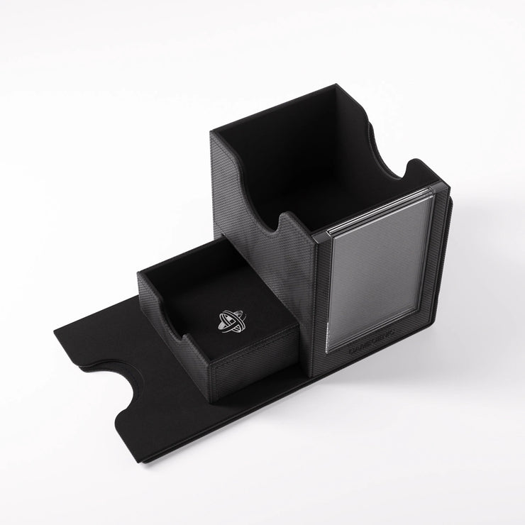The Sidekick PRO 100+ XL is a premium deck box, specifically designed for the widely popular Magic: The Gathering format COMMANDER. It includes a Slide Card Case for displaying the Commander or top card with additional UV protection. Due to the innovative placement, the stored deck can be easily identified without opening the box. The Slide Card Case can also be detached and used during gameplay. The integrated drawer holds additional tokens and other accessories.